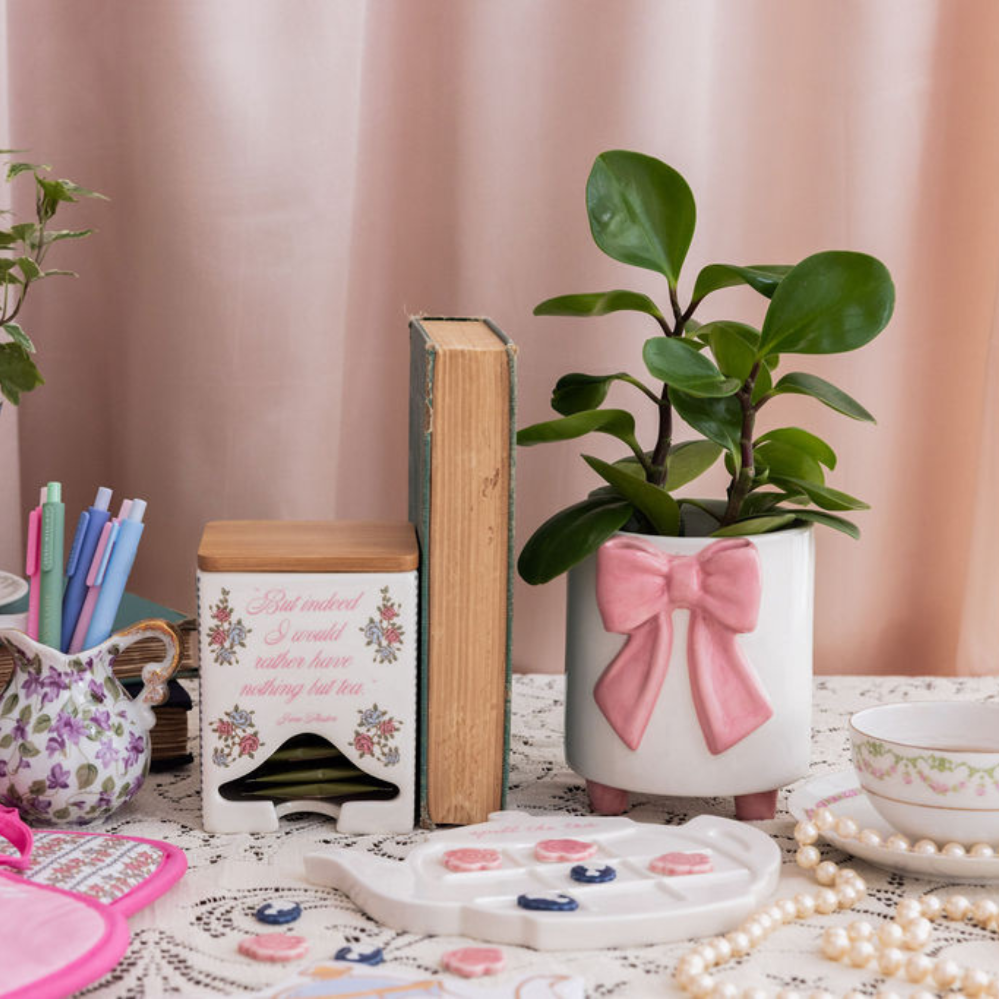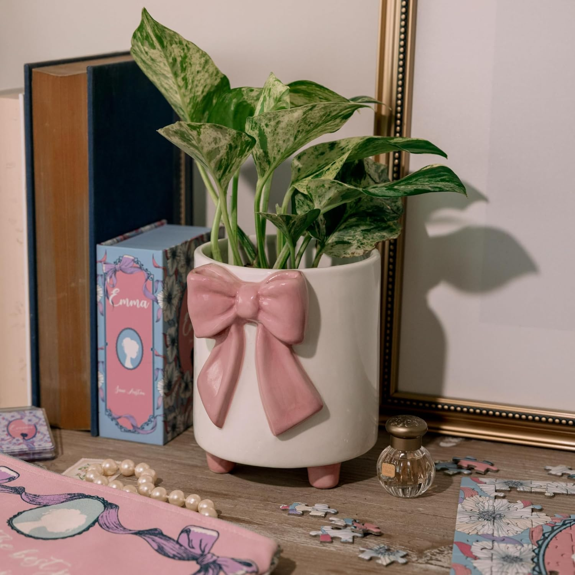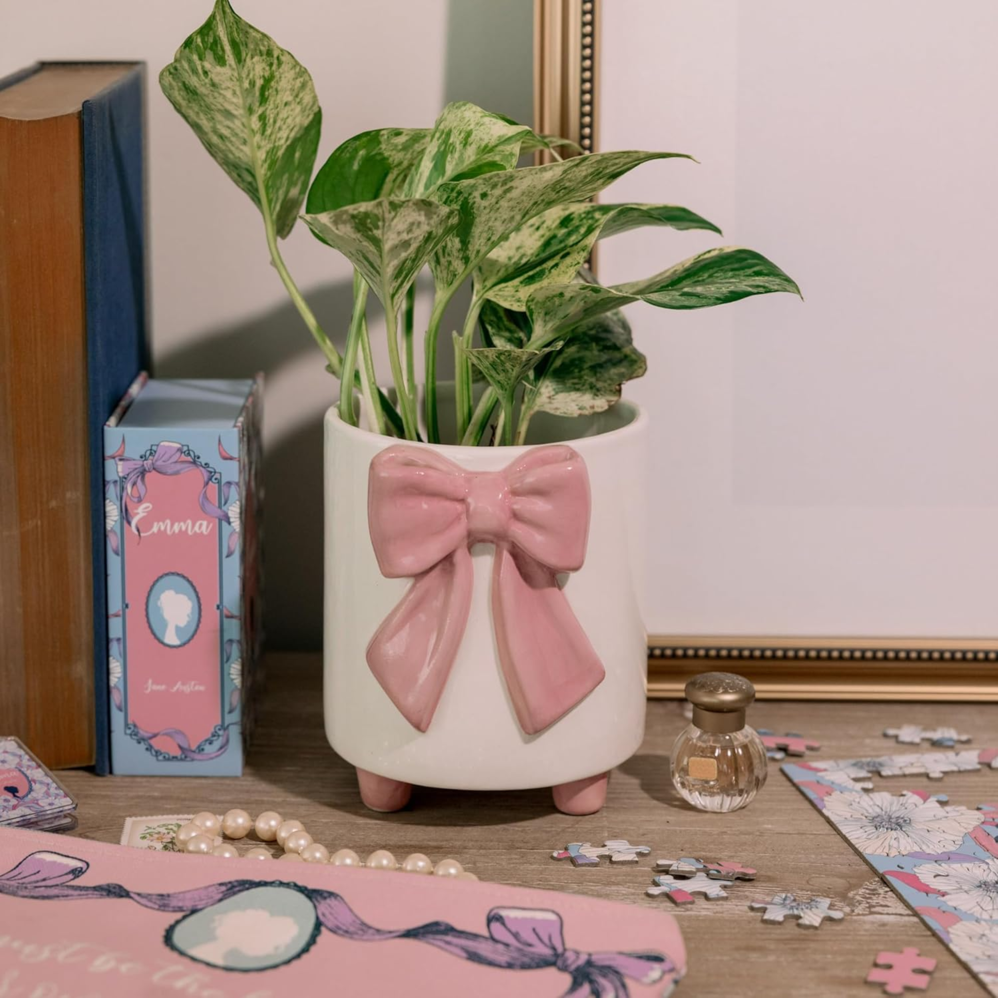 Footed Planter, Pink Bow